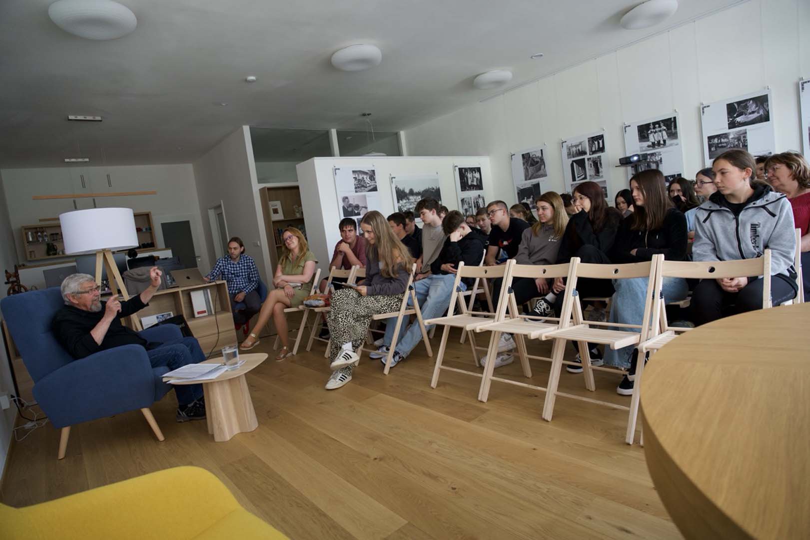 Sešly se tak u nás dvě třídy 9. ročníku a PhDr. Antonín Mička je seznámil s tematem v kontextu místa, v němž žijí, a představil jim hlavní osobnosti zapojené do protifašistického odboje. Součástí přednášky bylo opět promítání filmového dokumentu Přes Javorník chodník. Etnolog Petr Mička doplnil přednášku o výklad na téma romského holocaustu na Horňácku a přidal živou hudební ukázku z tvorby romské zpěvačky Růženy Danihelové, jíž Dušan Holý (společně se Ctiborem Nečasem) věnoval publikaci Žalující píseň.
